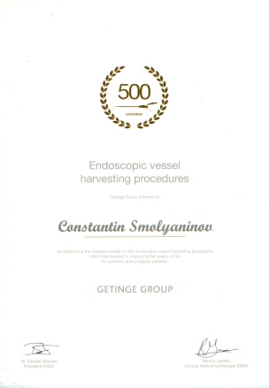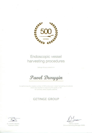 Два доктора из кардиохирургического отделения были приглашены на заседание международного клуба по эндоскопическому забору кондуитов, организованному компанией GETINGE GROUP в г. Вена (Австрия). Дурыгин Павел Андреевич и Смолянинов Константин Анатольевич приняли активное участие в дискуссиях, обсуждении методов оптимизации процесса, а также получили памятные значки и сертификаты золотого уровня, что подтверждает выполнение ими более 500 эндоскопических заборов БПВ.